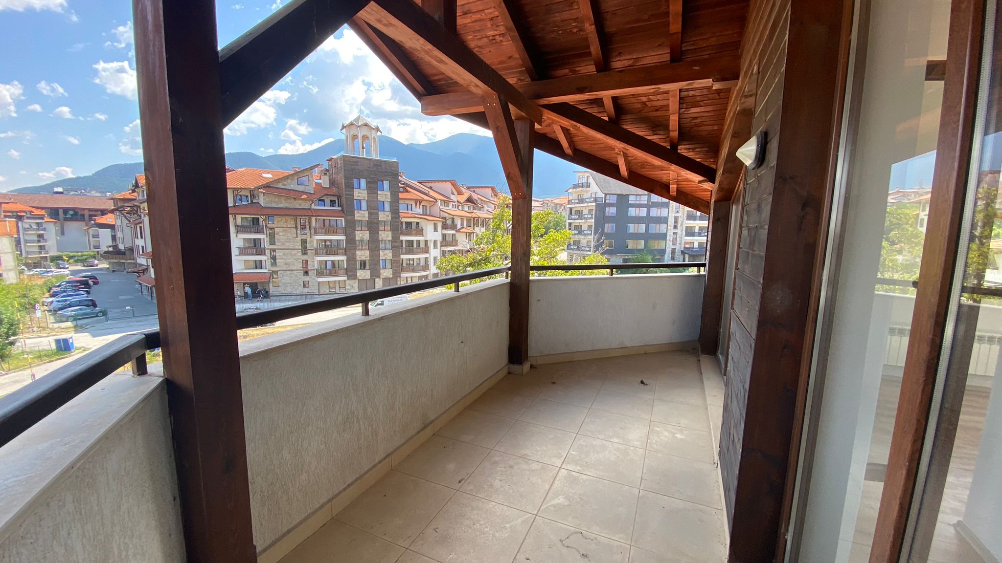 The apartment consists of a living room with a prepared place for a kitchenette, two bedroomsd and two bathrooms. The living room is really bright thanks to its large windows and two skylight windows. There is an access to a huge East-facinbg terrace with breathtaken views of Pirin mountains and surrounding nature.