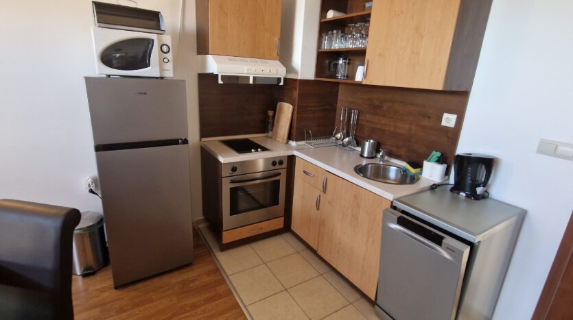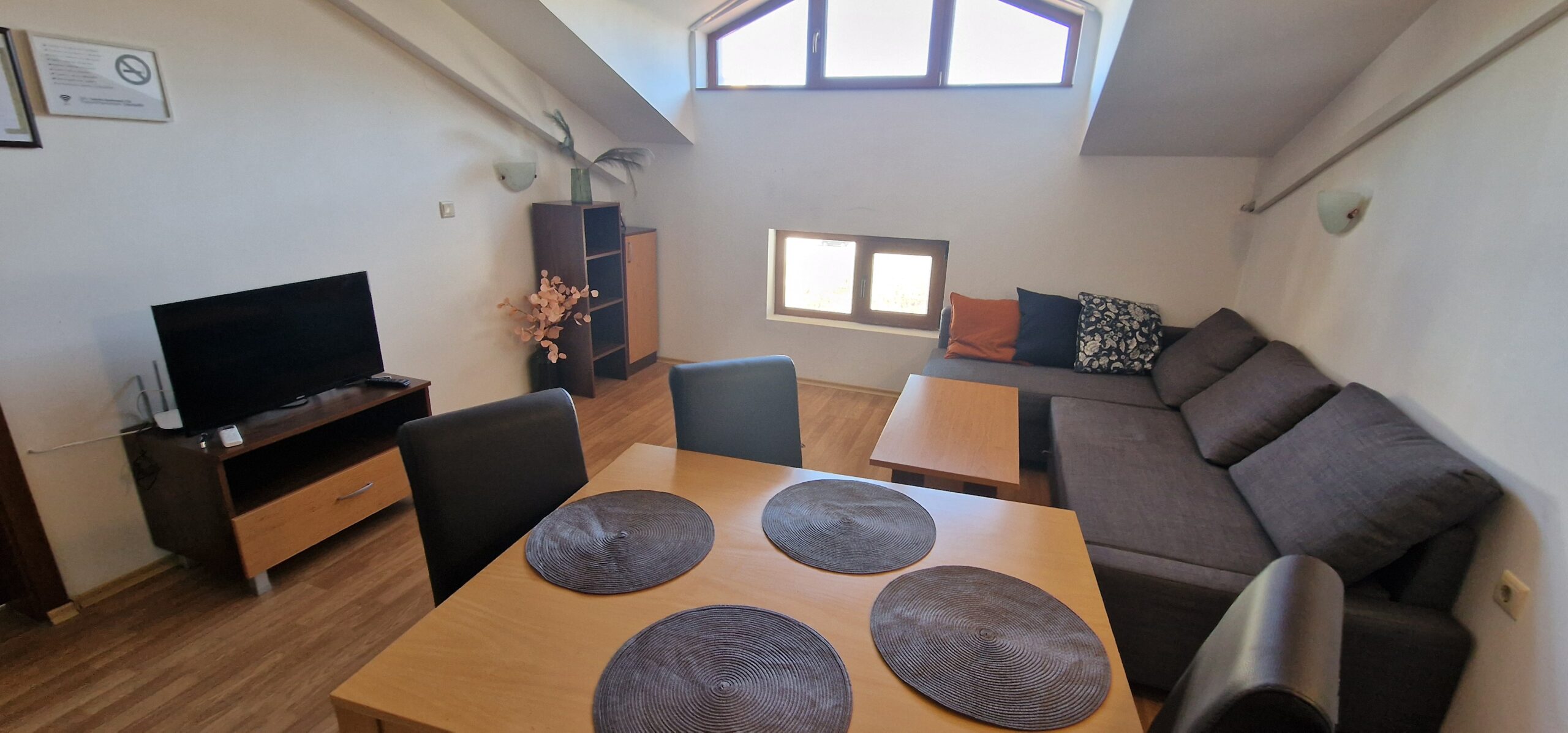 We are pleased to offer for sale this cozy and well furnished 1-bedroom apartment in a complex, good location 7- 8 minutes walking distance to the Gondola Ski lift and 10 minutes to the Old town.