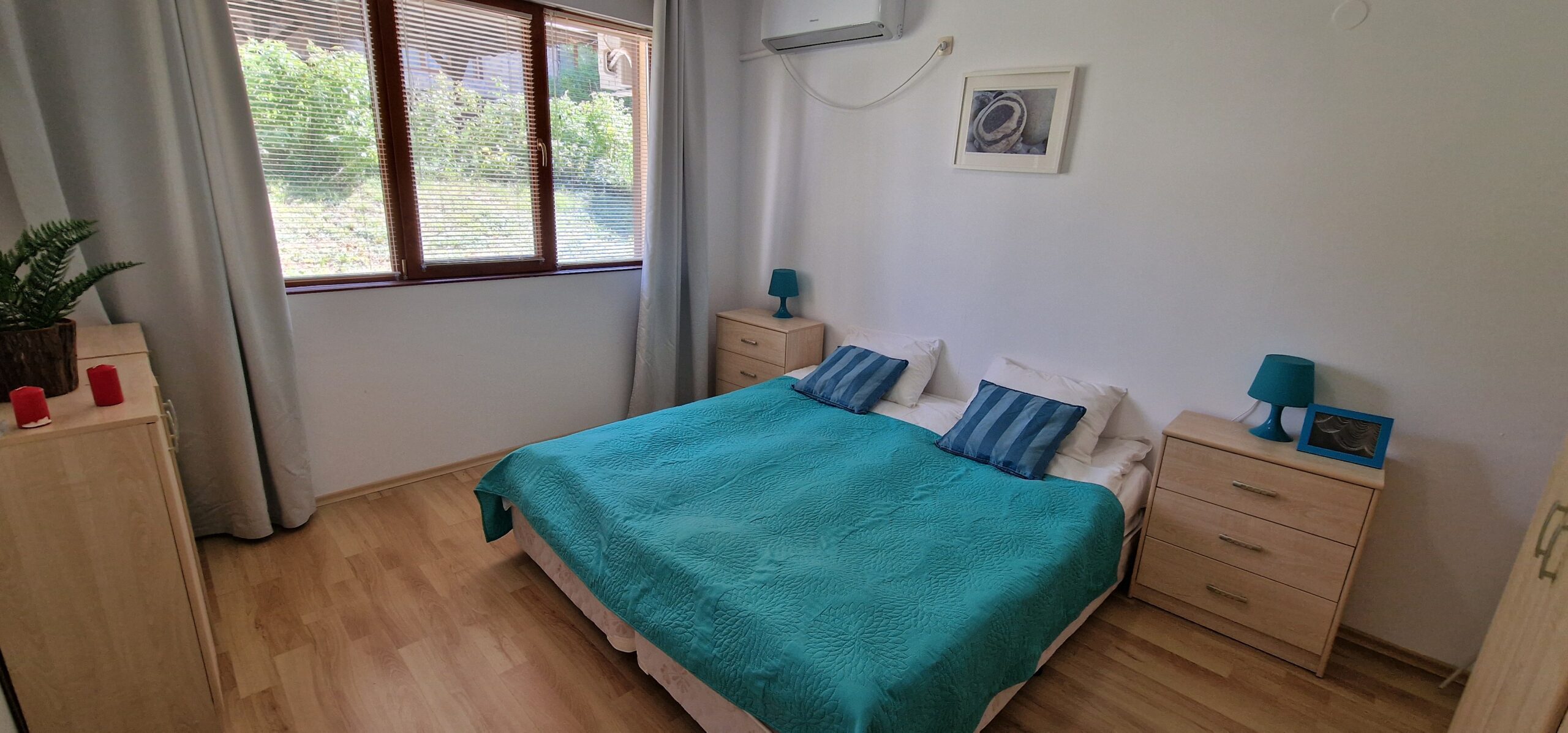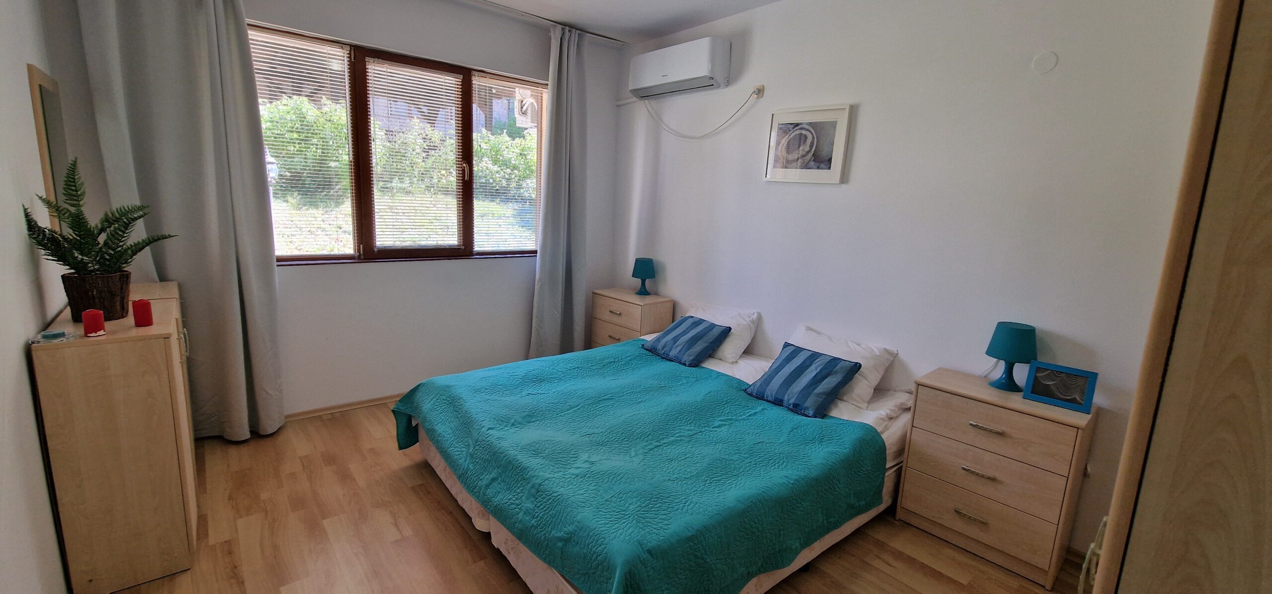 Both rooms have nice view to the well maintained inner yard of the complex. There is no balcony in the apartment.