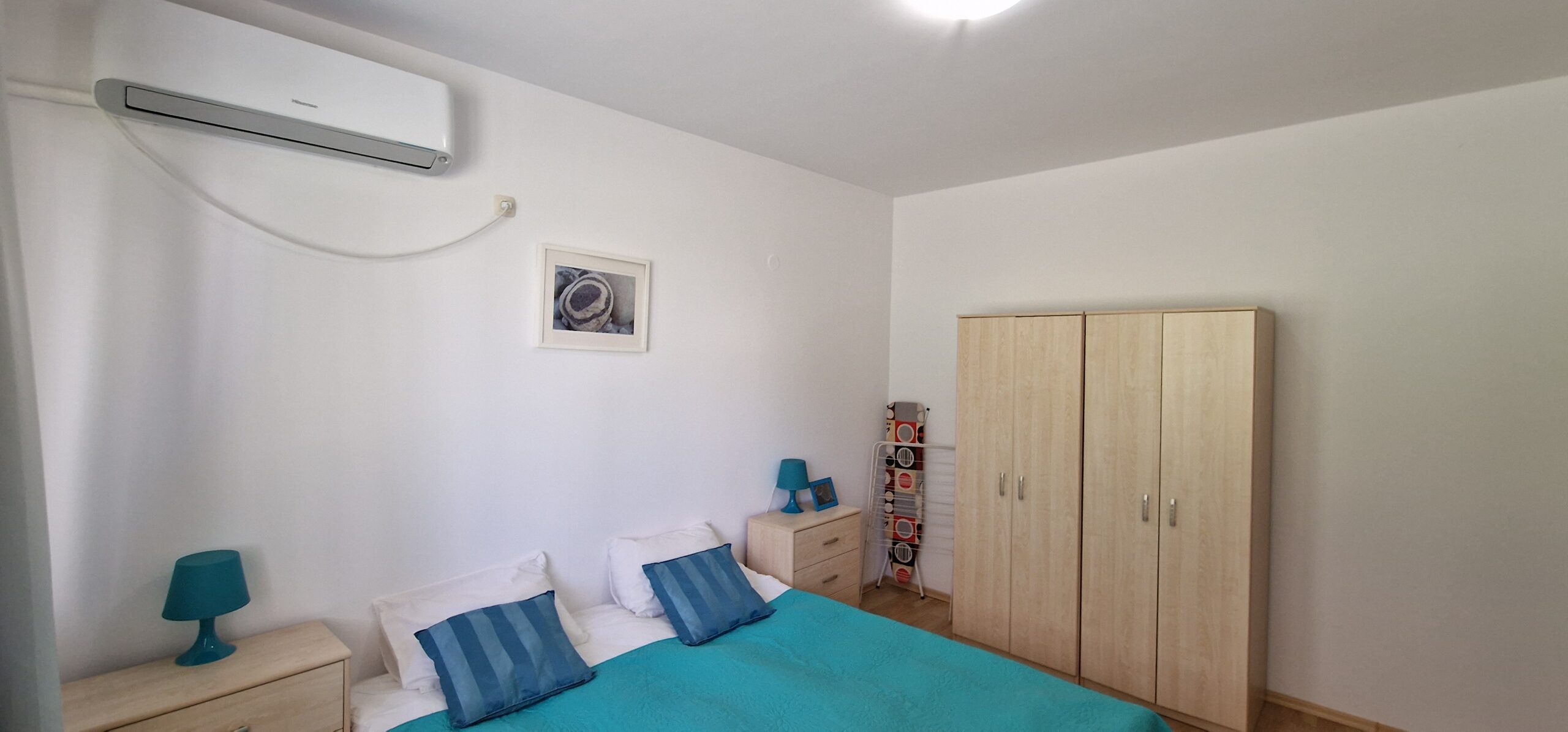 The apartment is heated by air conditioning and has individual lots for electricity and water.