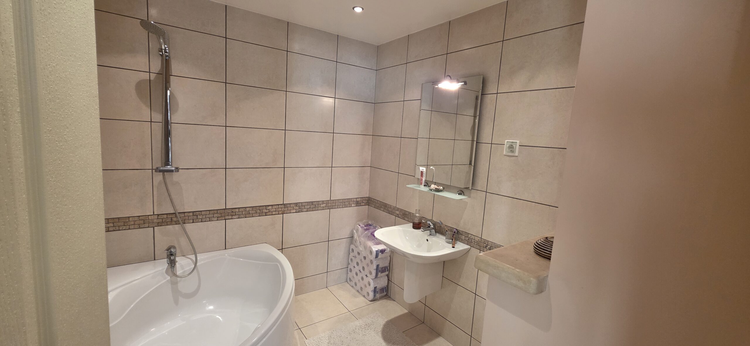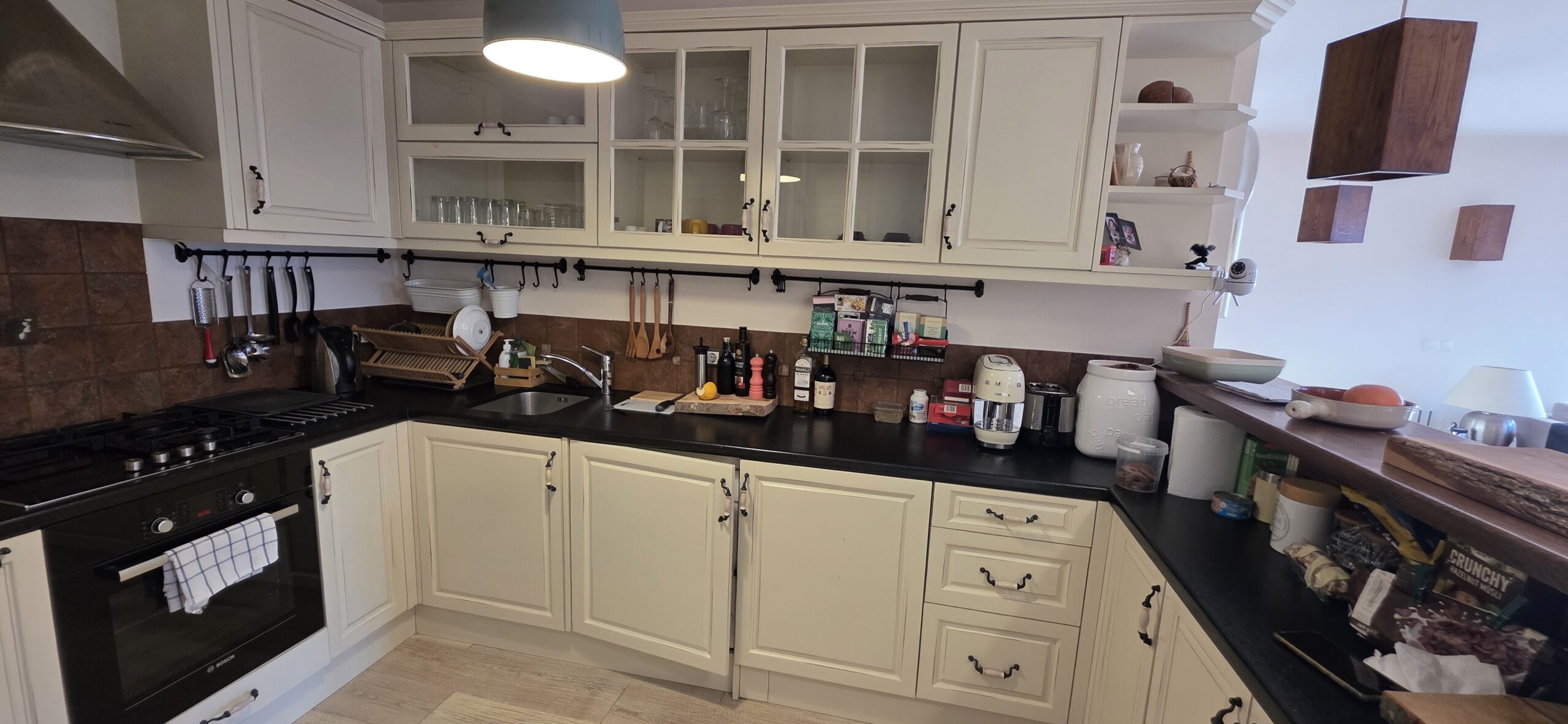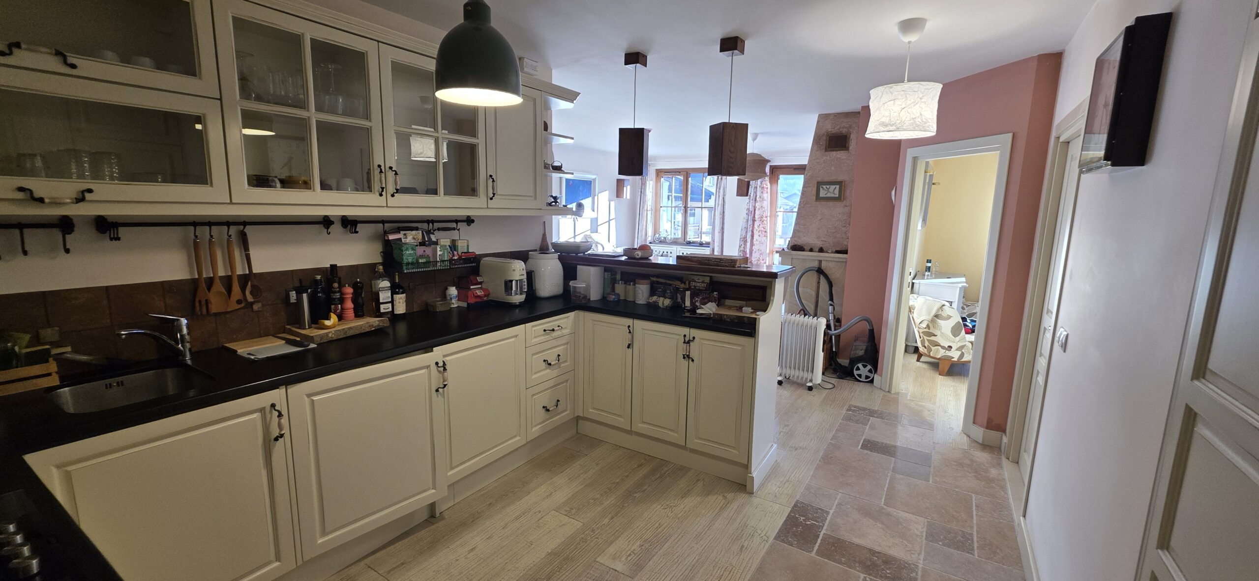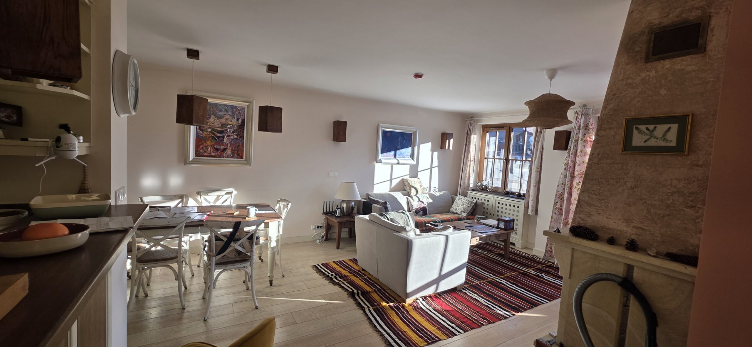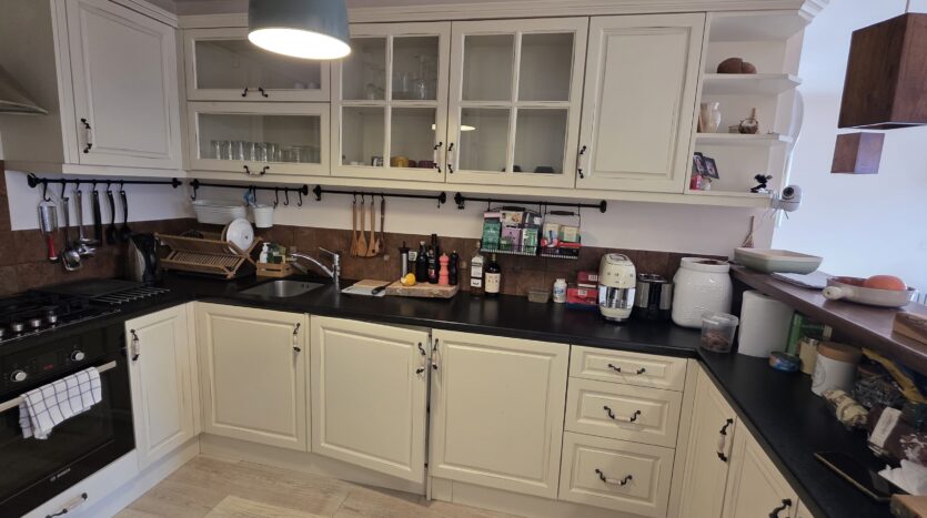 The property is finished with high quality materials: solid wood floors , luxuriosly finished bathrooms with stone tiles, custom-made, solid wood furniture, quality appliances and beautiful log- fireplace,