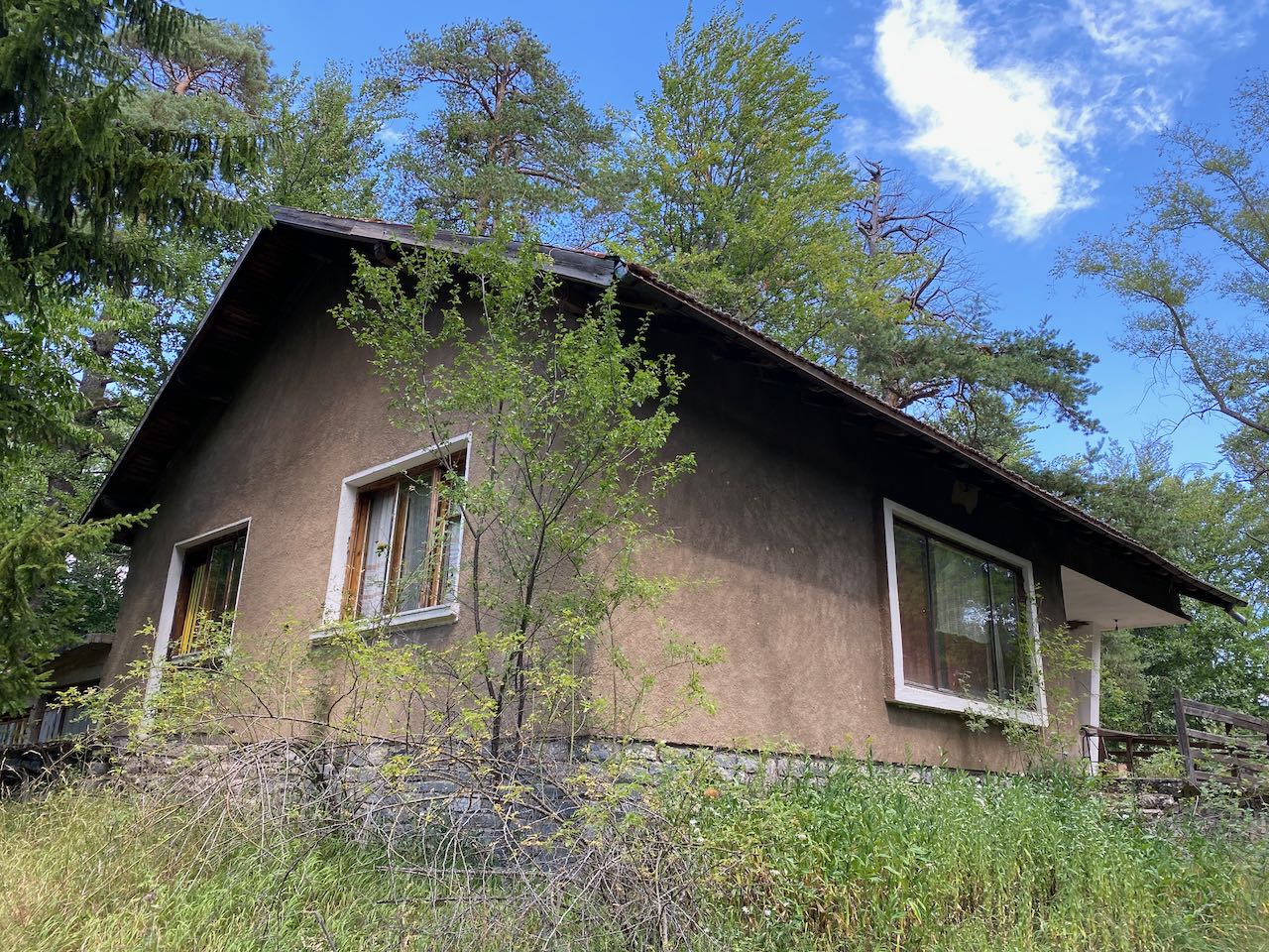 We offer for sale this one-storey house in the Predel area near the campsite, on a forest hill.