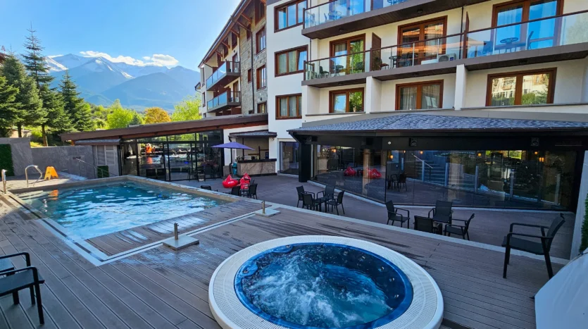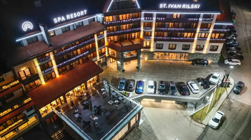 Hotel and apartment complex St. Ivan Rilski is a year-round SPA resort with rich amenities. It offers an indoor pool, a year-round heated outdoor pool and a hot tub with mountain views, an extensive wellness center with an area of over 1000 m² with saunas, a steam bath and a fitness center. There is a restaurant, a bar, a children’s playground and parking in the area. The complex is gated, with a 24-hour reception and Wi-Fi throughout the area. It has repeatedly won the “Best Mountain 4* SPA Hotel in Bulgaria” award.