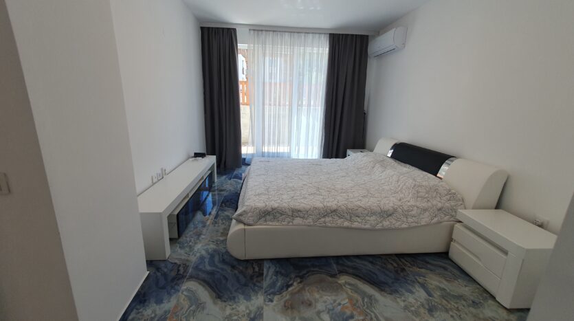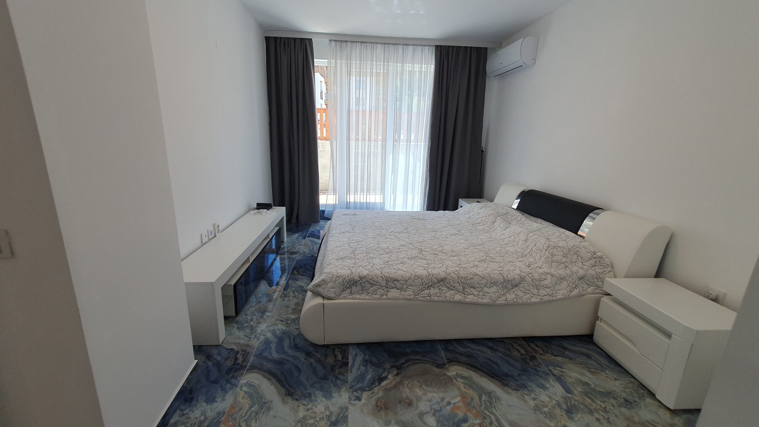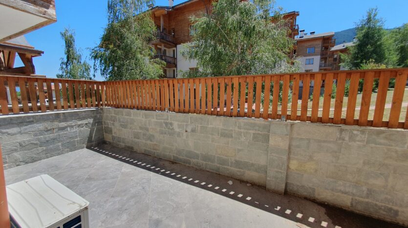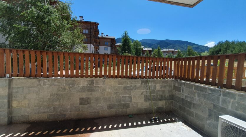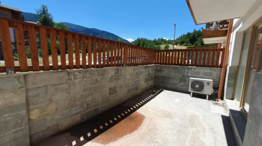 The apartment is finished with premium materiasls, located on the first floor, facing South and has a total area of 106.26 sq.m., of which the built-up area is 90.73 sq.m. and the common parts are 15.53 sq.m. All rooms have access to a huge South-facing terrace (approx. 35 sq.m.) with a great view of Pirin mountain.