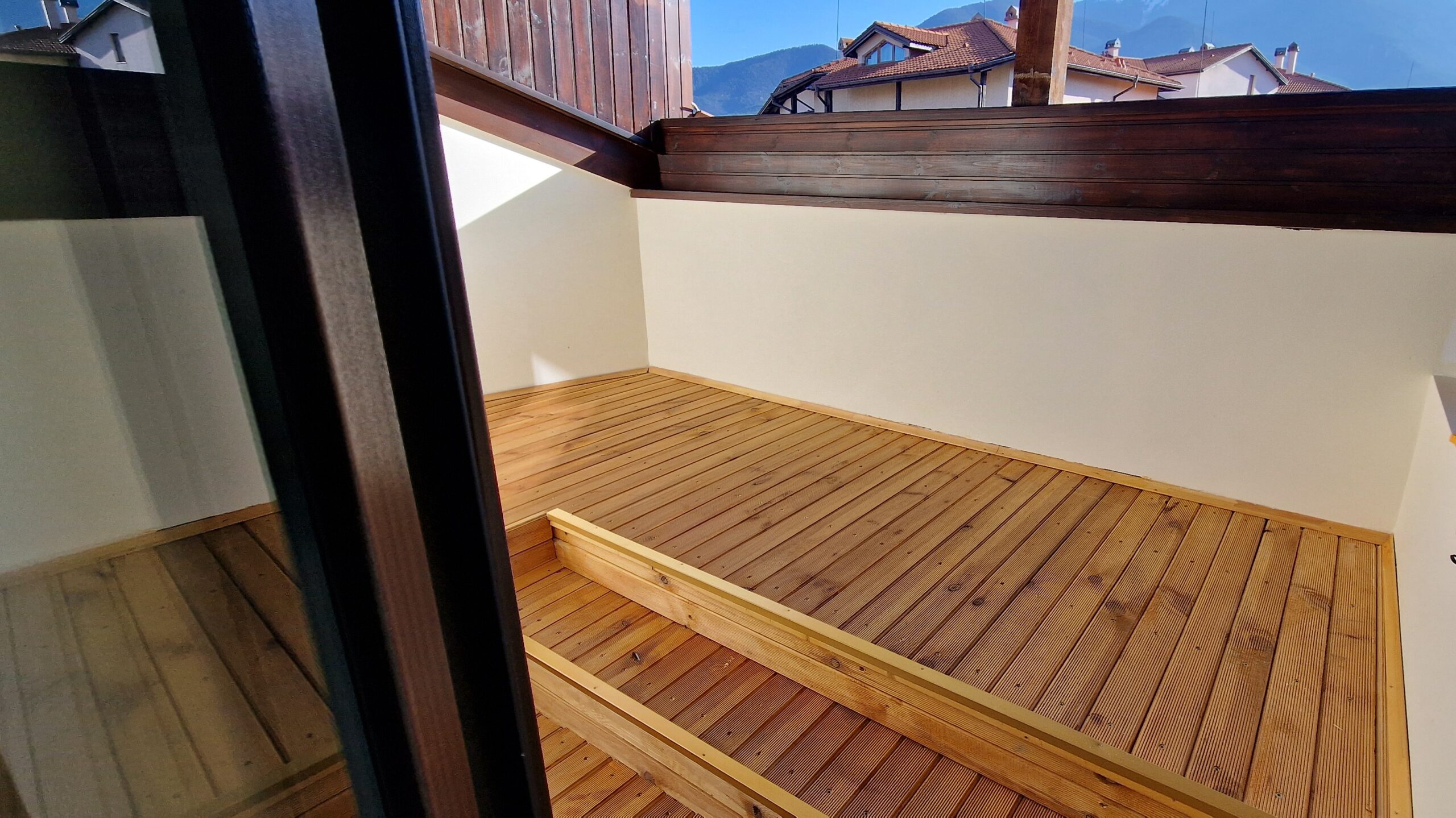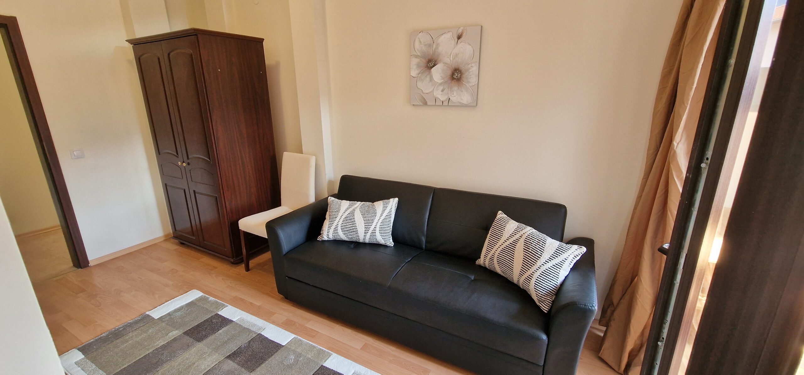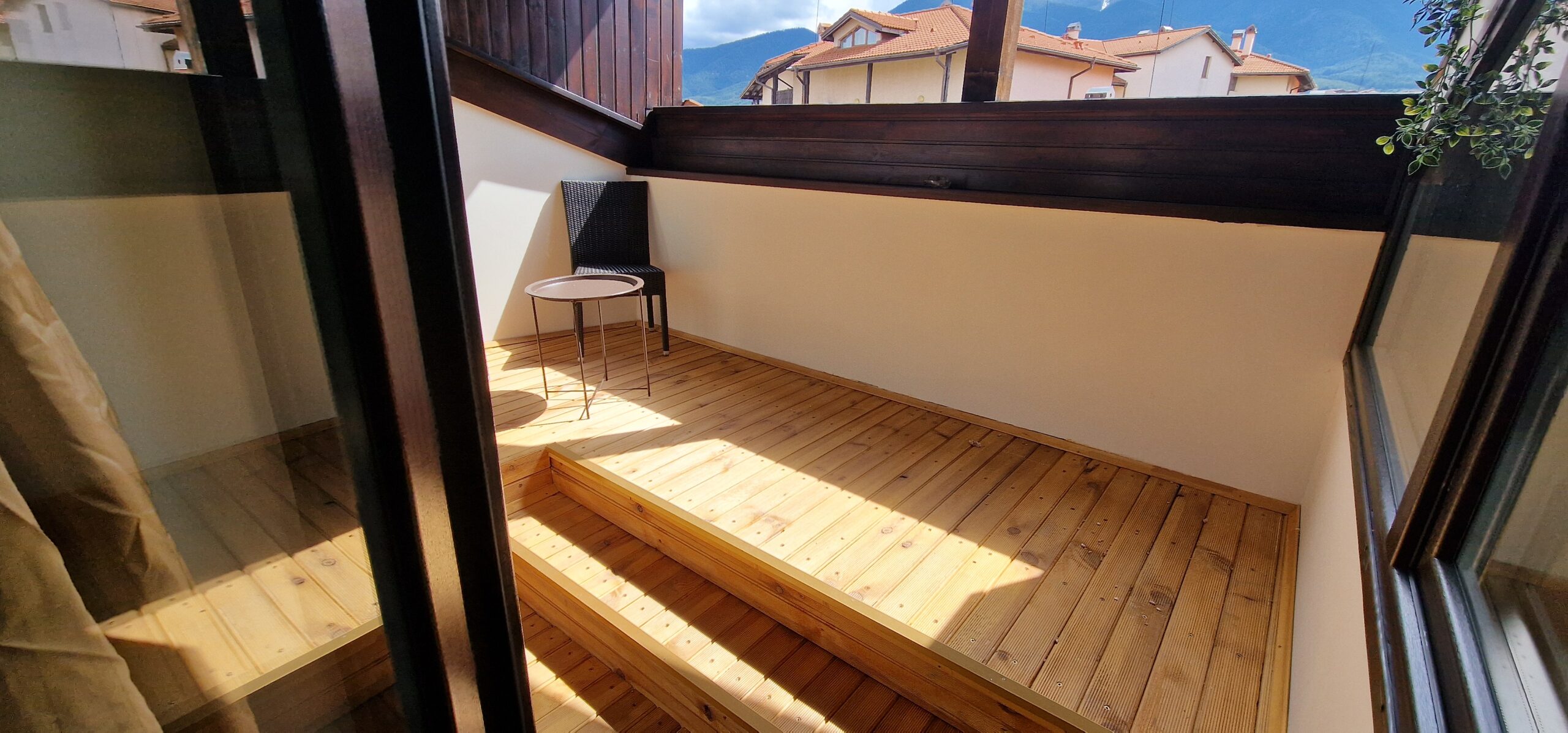 The apartment was freshly renovated, with new walls and ceiling paint, some new windows and balcony doors, new balcony decking and wood decoration.