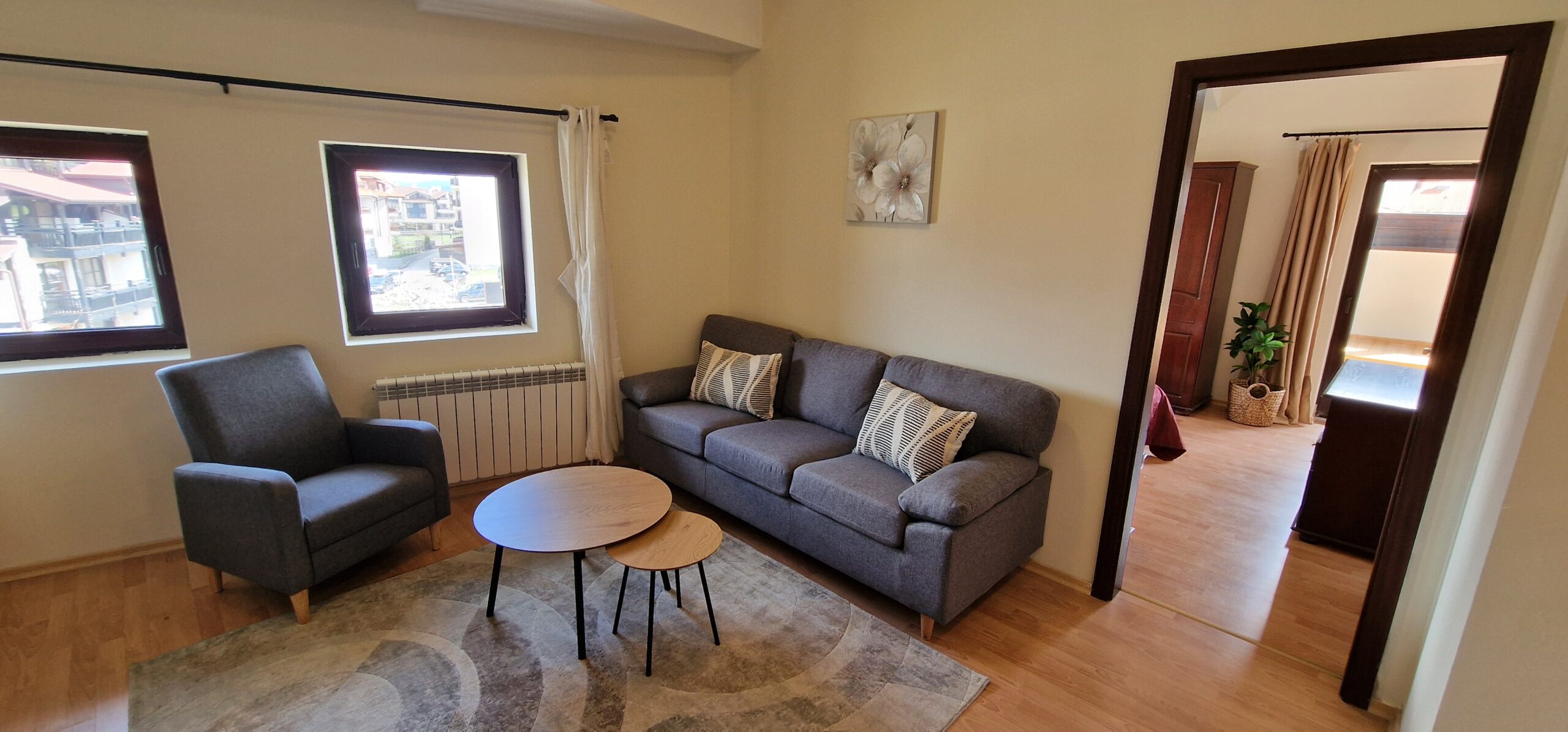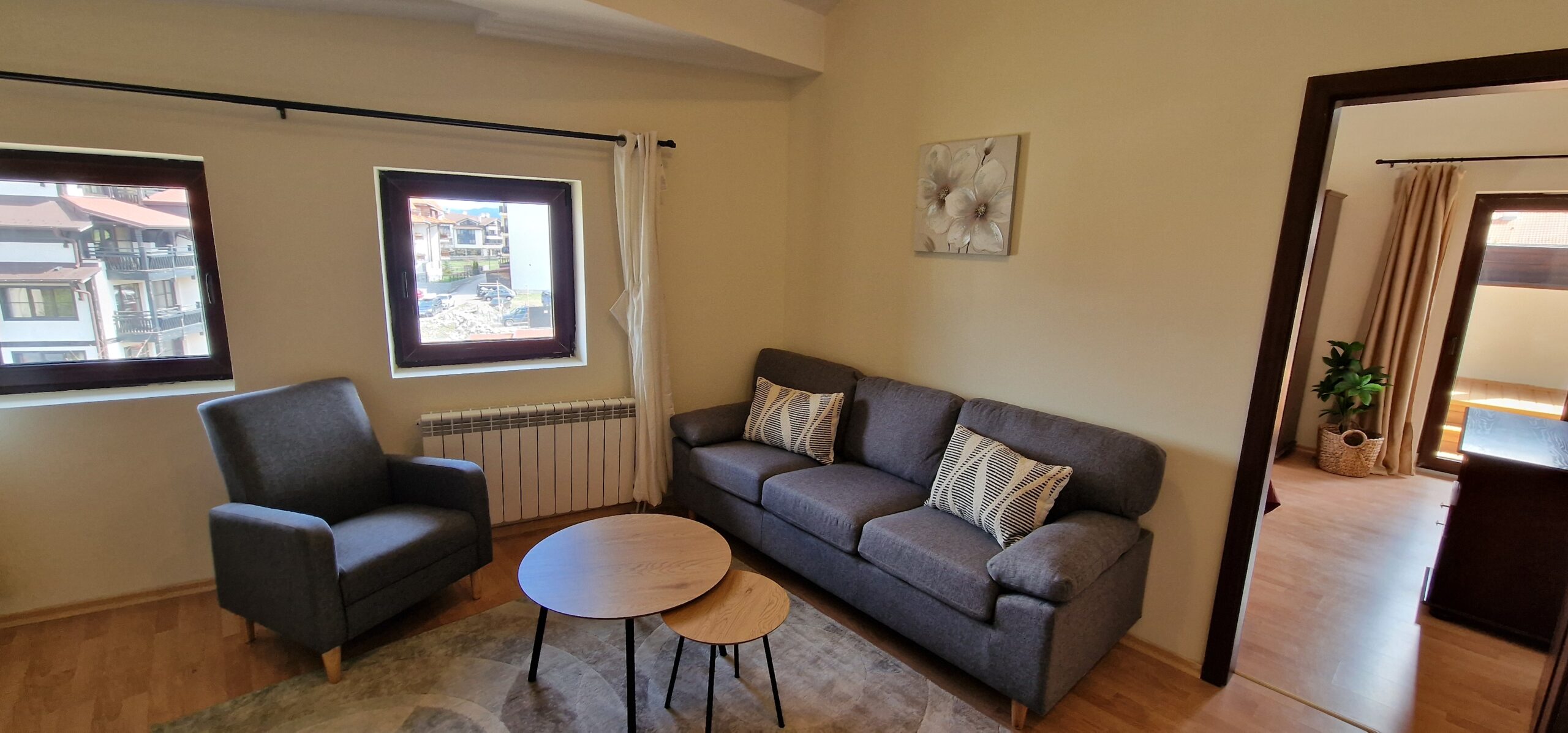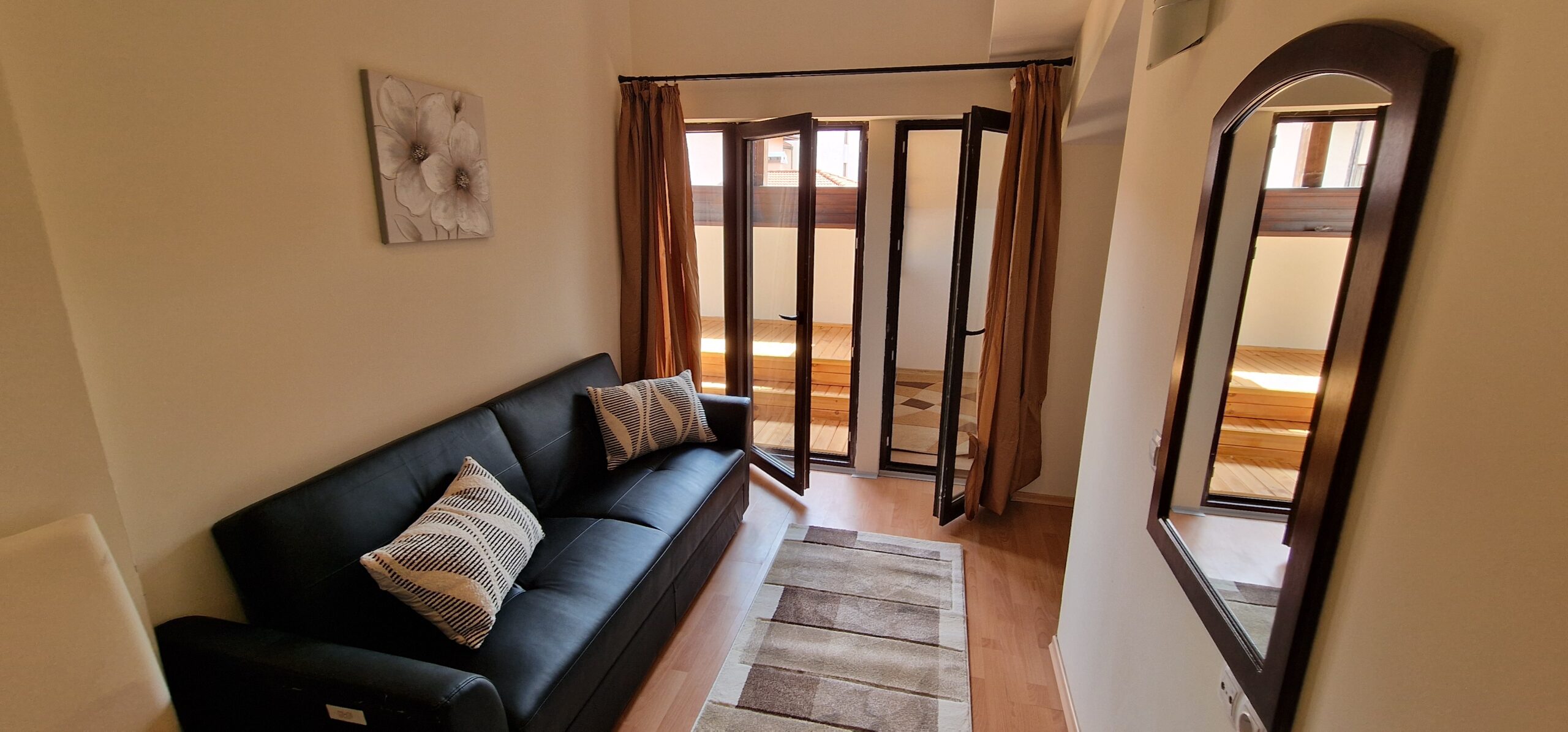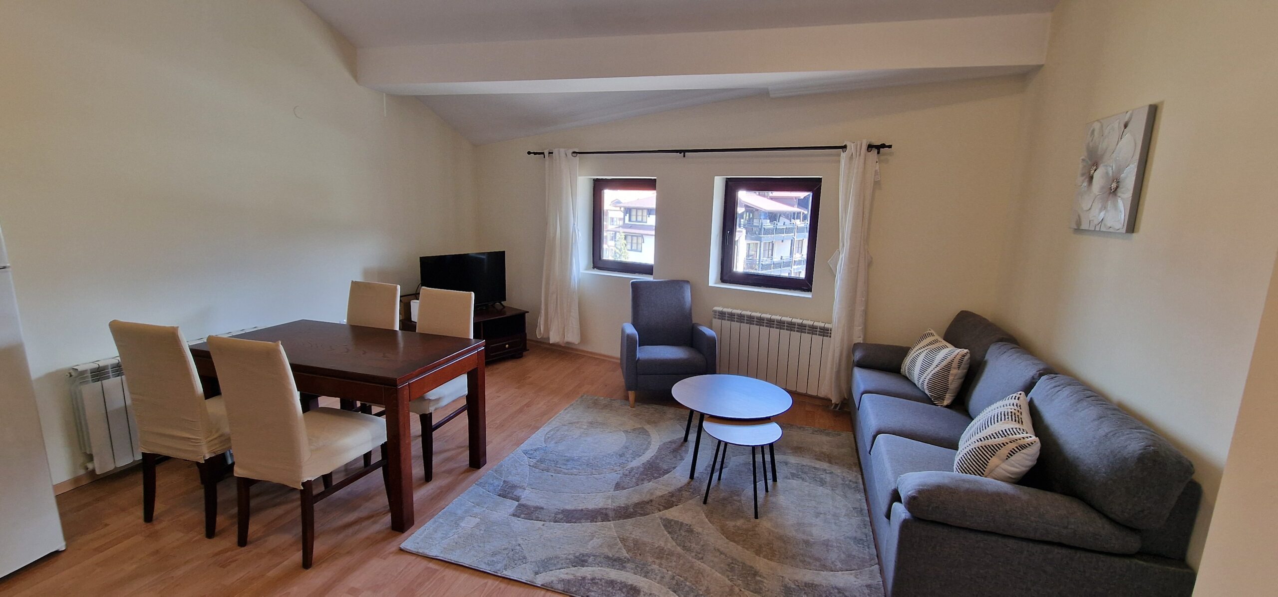 The apartment was freshly renovated, with new walls and ceiling paint, some new windows and balcony doors, new balcony decking and wood decoration.