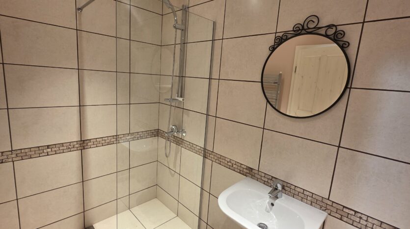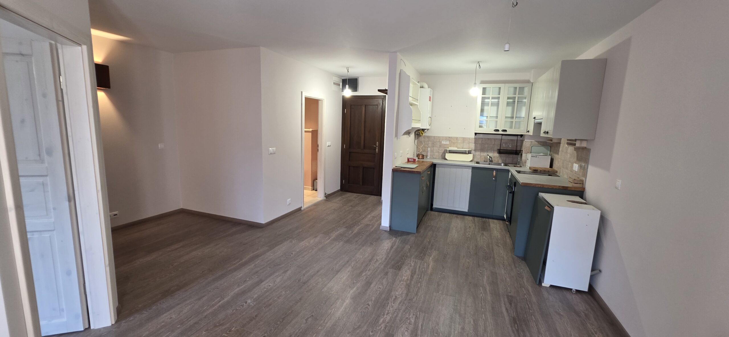 The property is finished with high quality materials: luxuriosly finished bathroom with stone tiles, custom-made kitchenette with quality appliances and beautiful log fireplace.