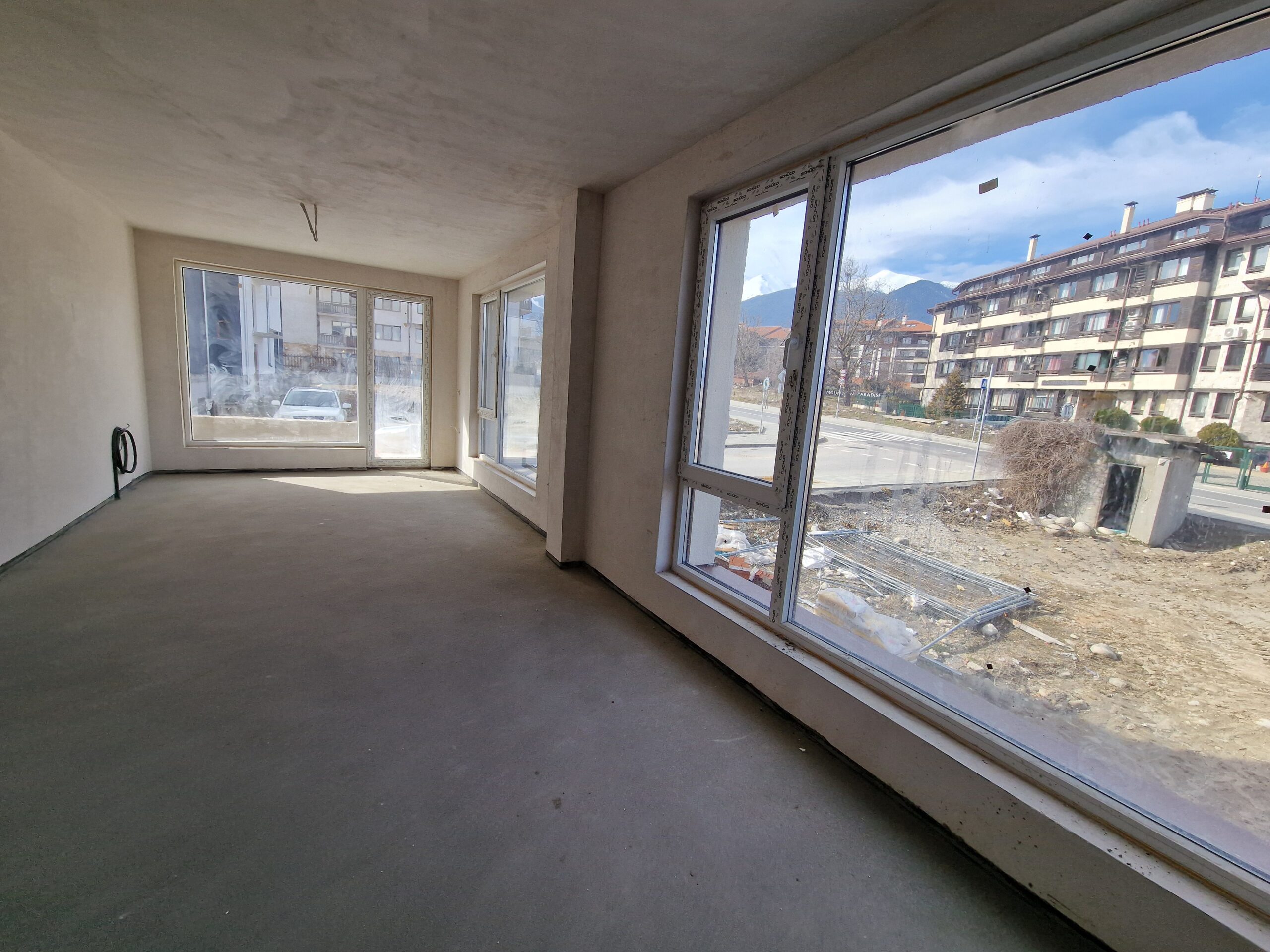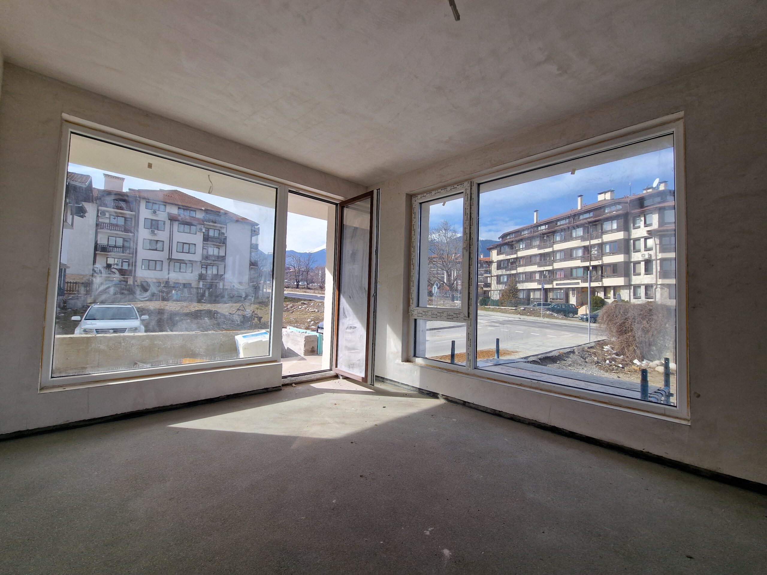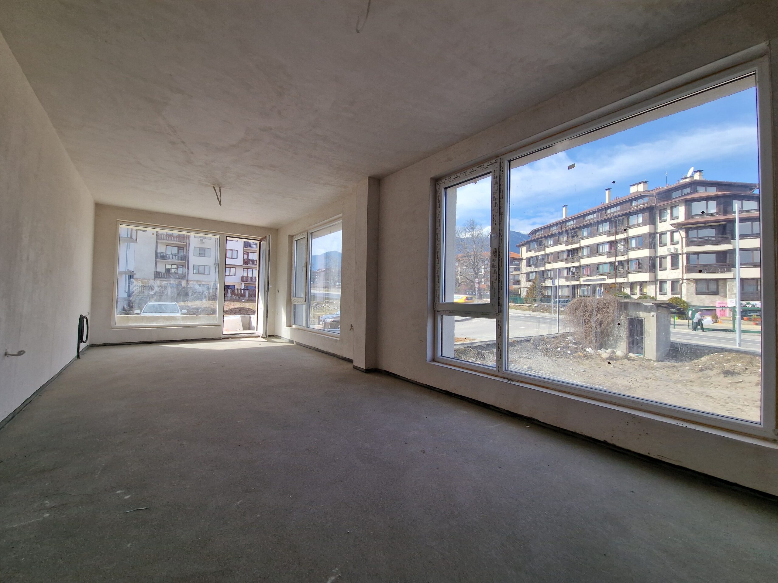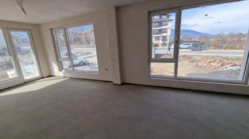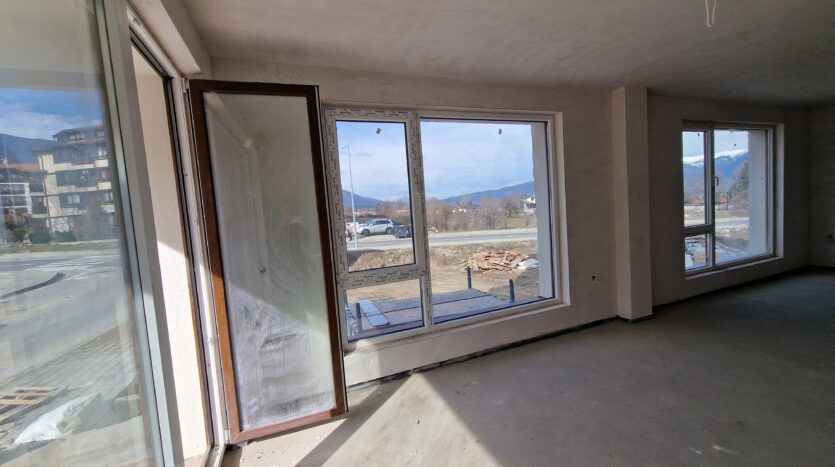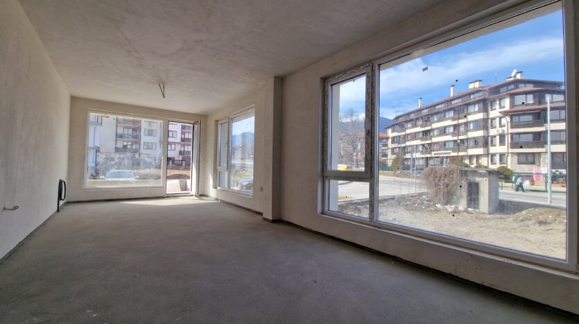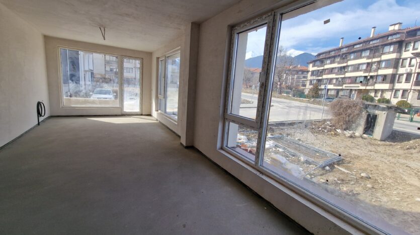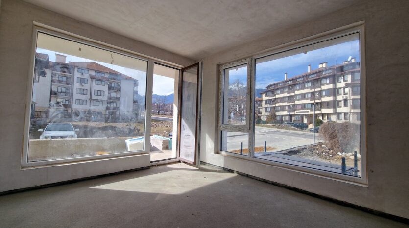 Thе apartment consists of an entrance hallway, spacious living/dining room with wide windows which open panoramic views and prepared place for a kitchenette, two bedrooms, two bathrooms and a storage room. There is an access to a spacious terrace with a magnificent views of Pirin mountains.