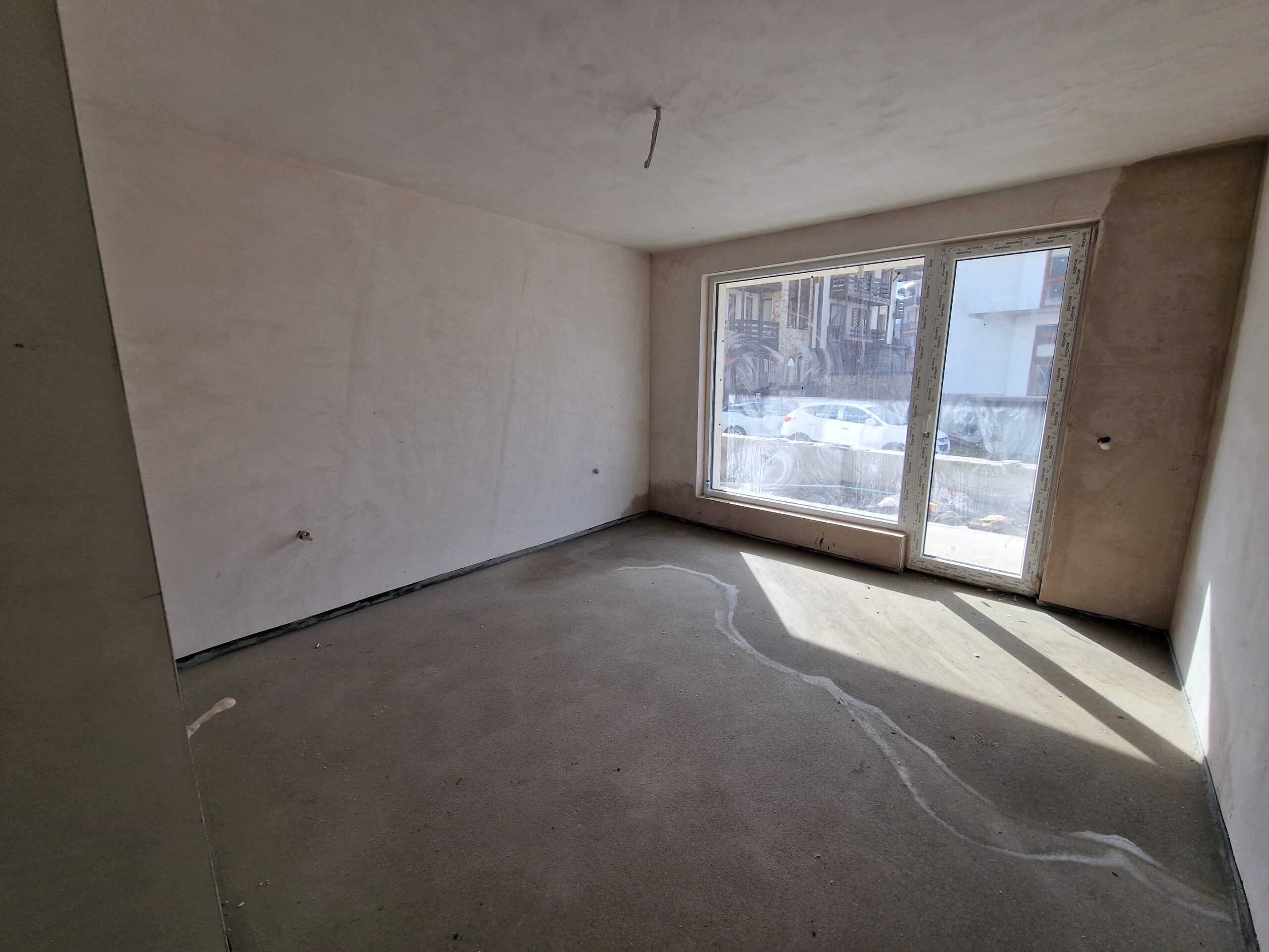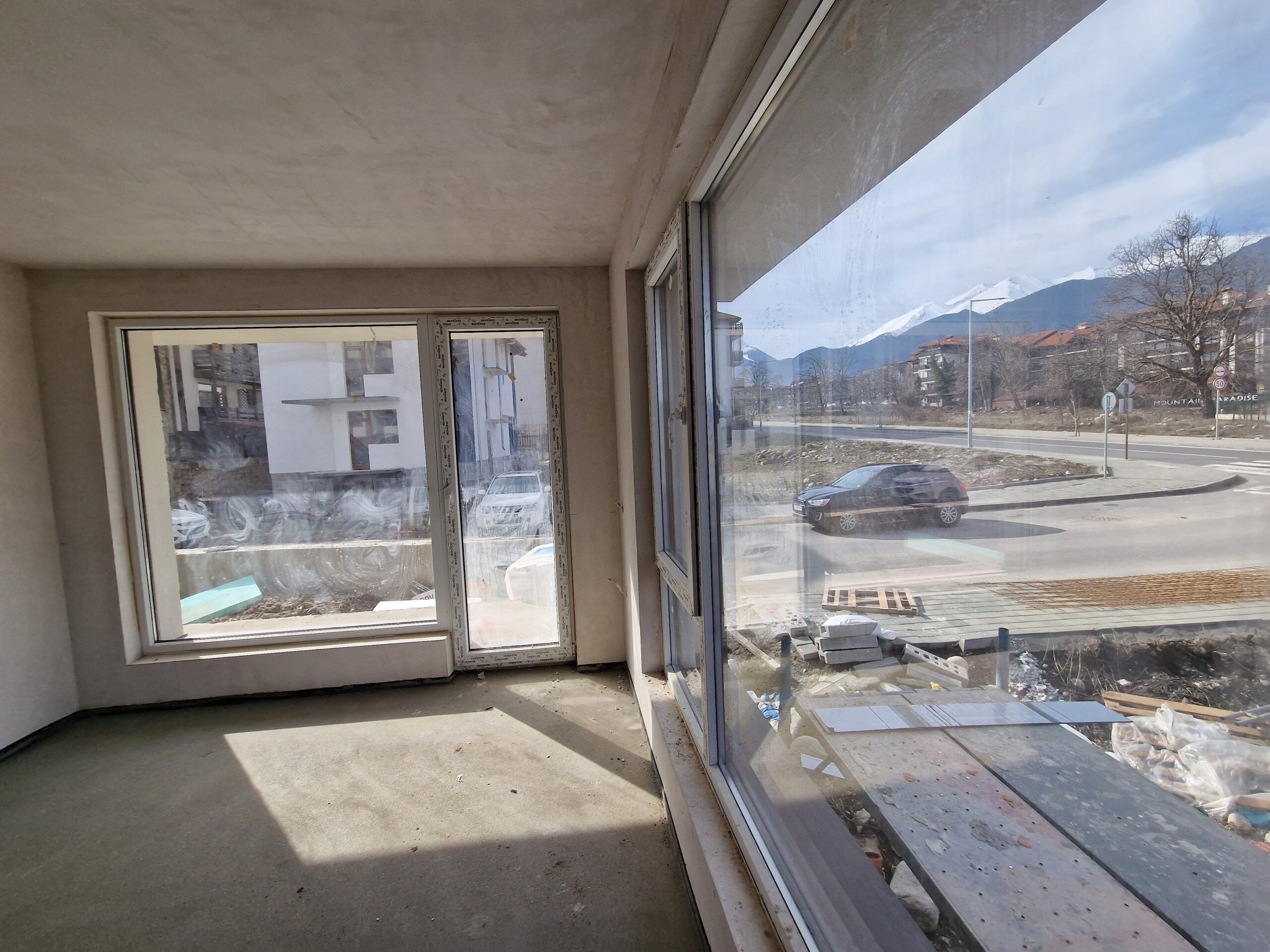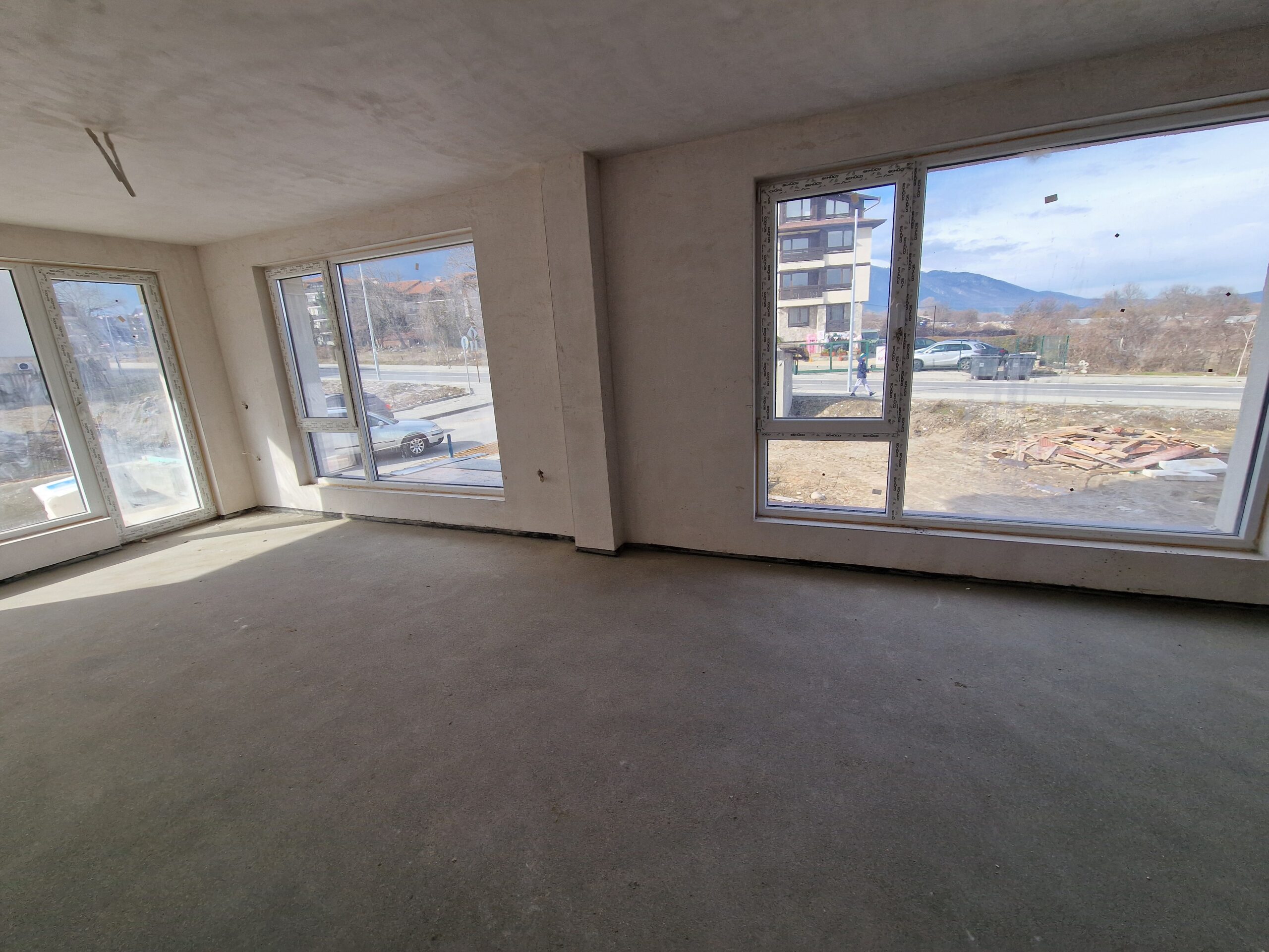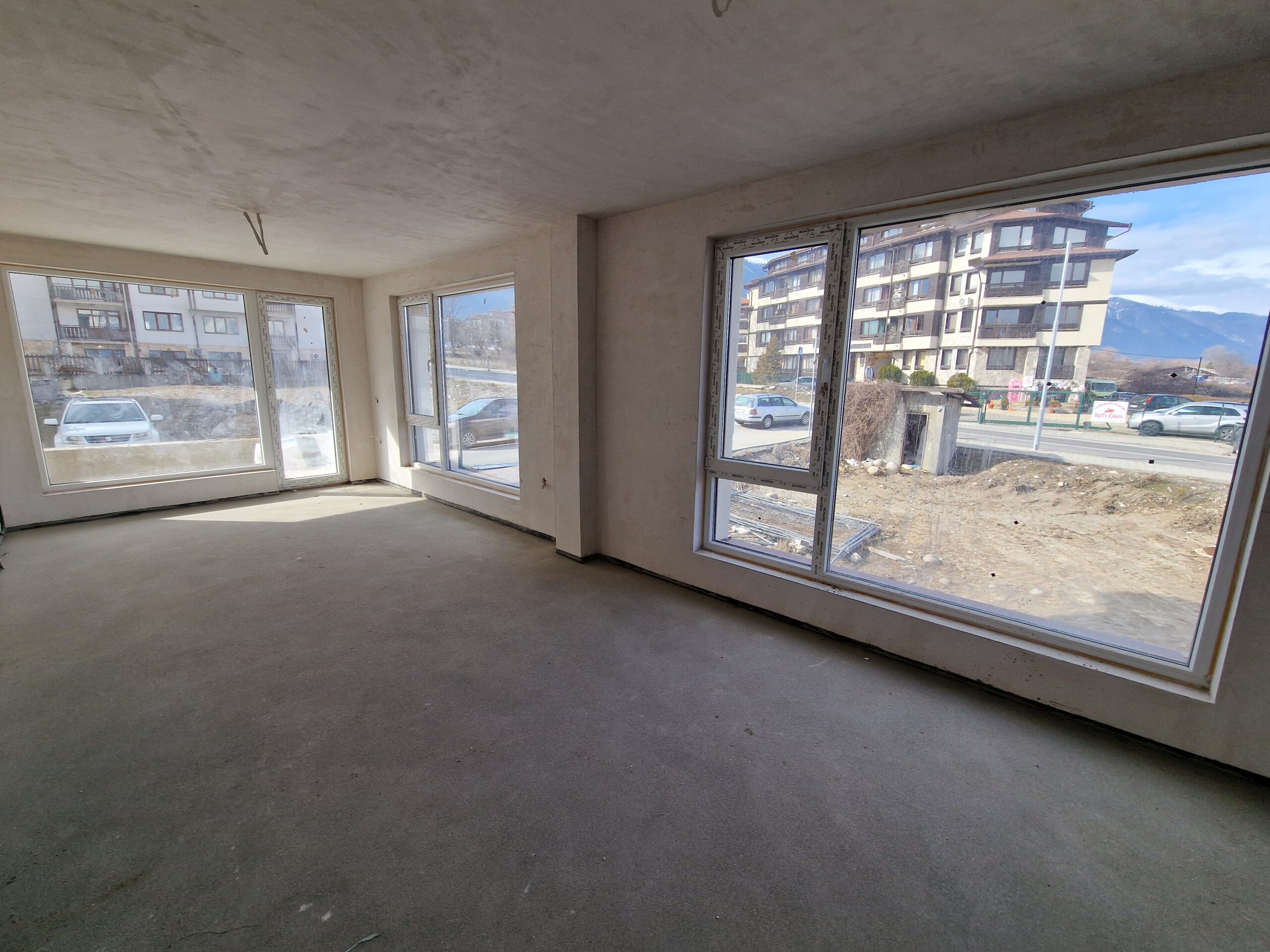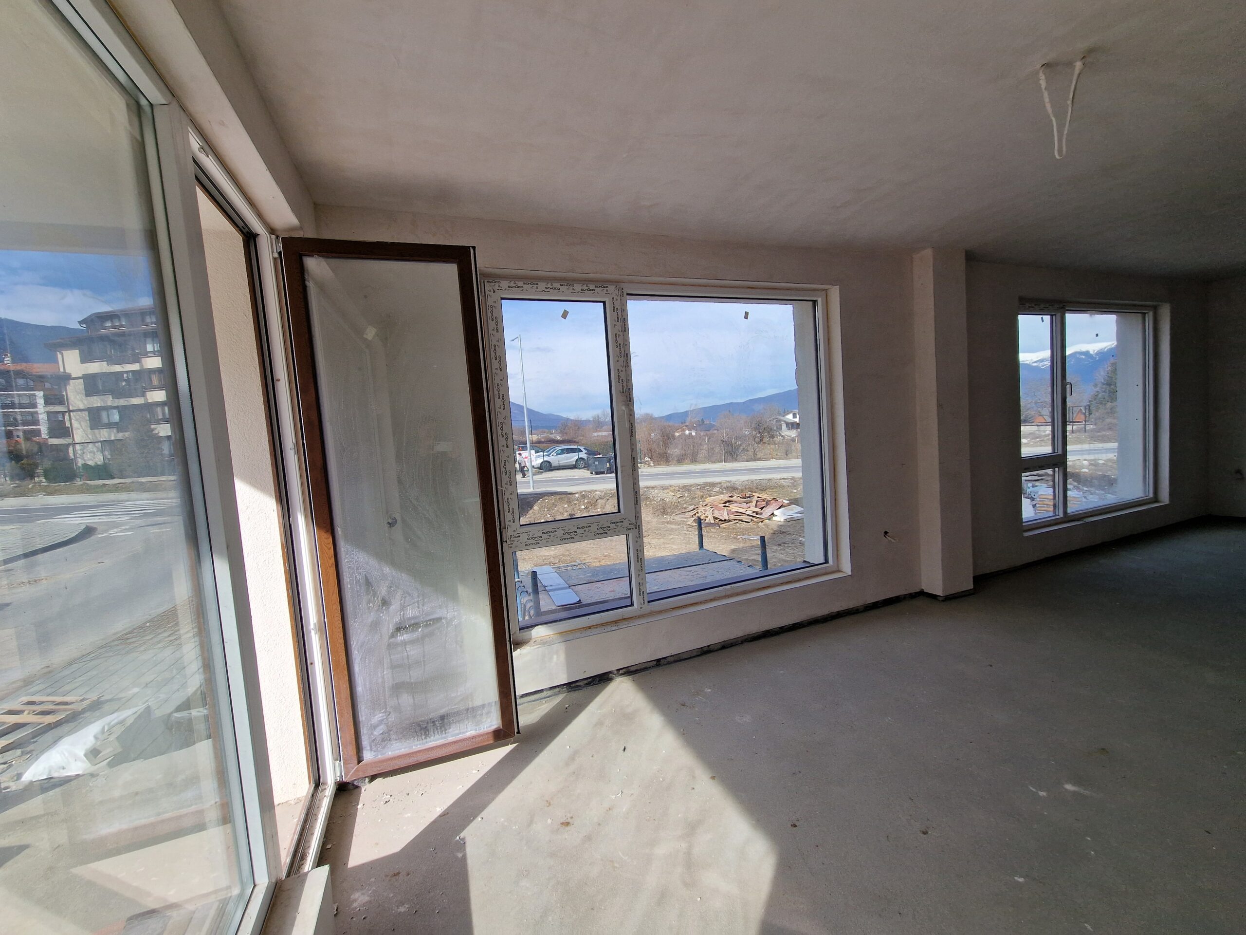 Thе apartment consists of an entrance hallway, spacious living/dining room with wide windows which open panoramic views and prepared place for a kitchenette, two bedrooms, two bathrooms and a storage room. There is an access to a spacious terrace with a magnificent views of Pirin mountains.