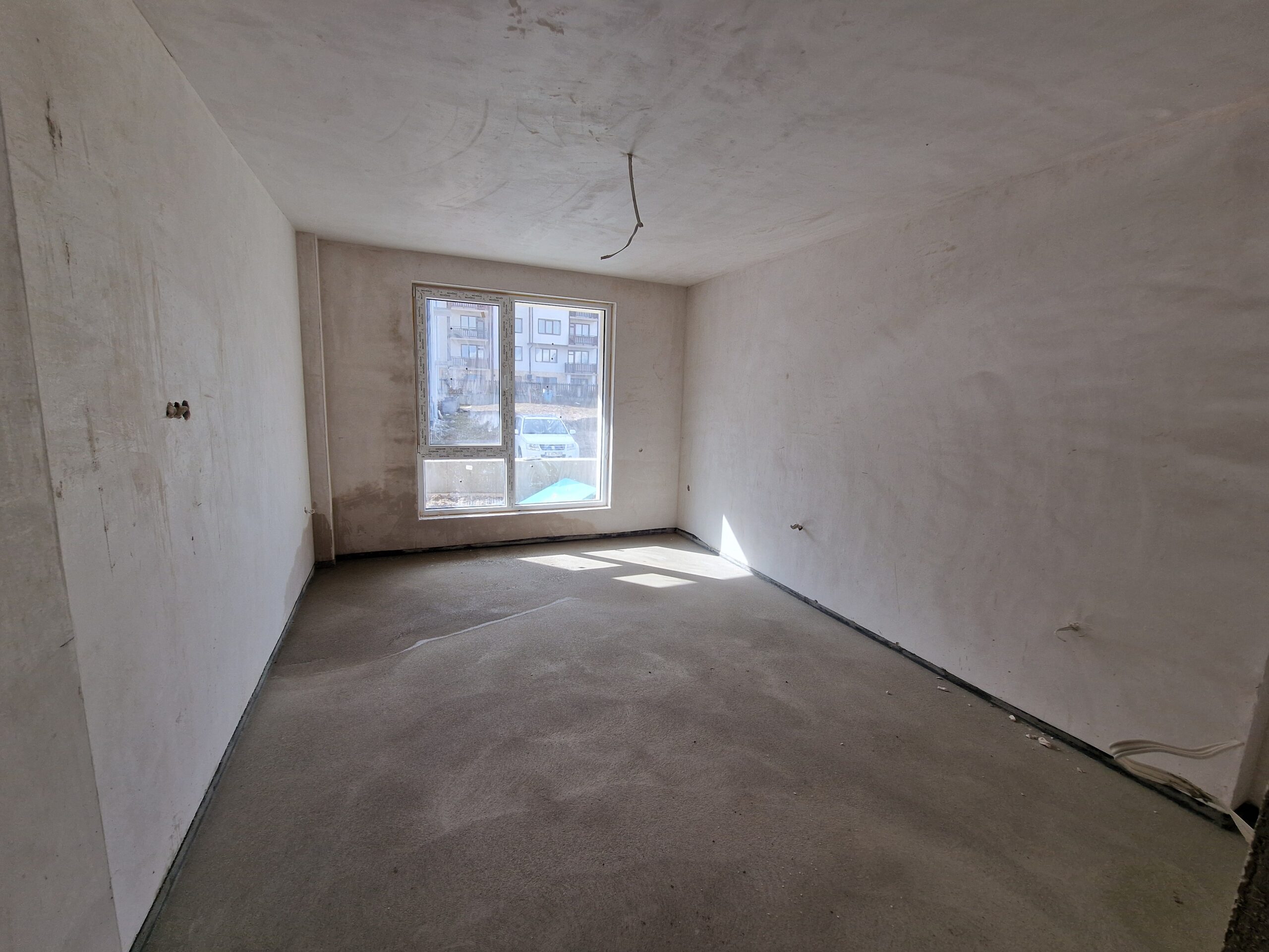 The apartment is for sale with front door, finished terrace, plastered walls, cement floor and electrical network installed.