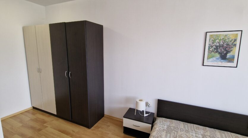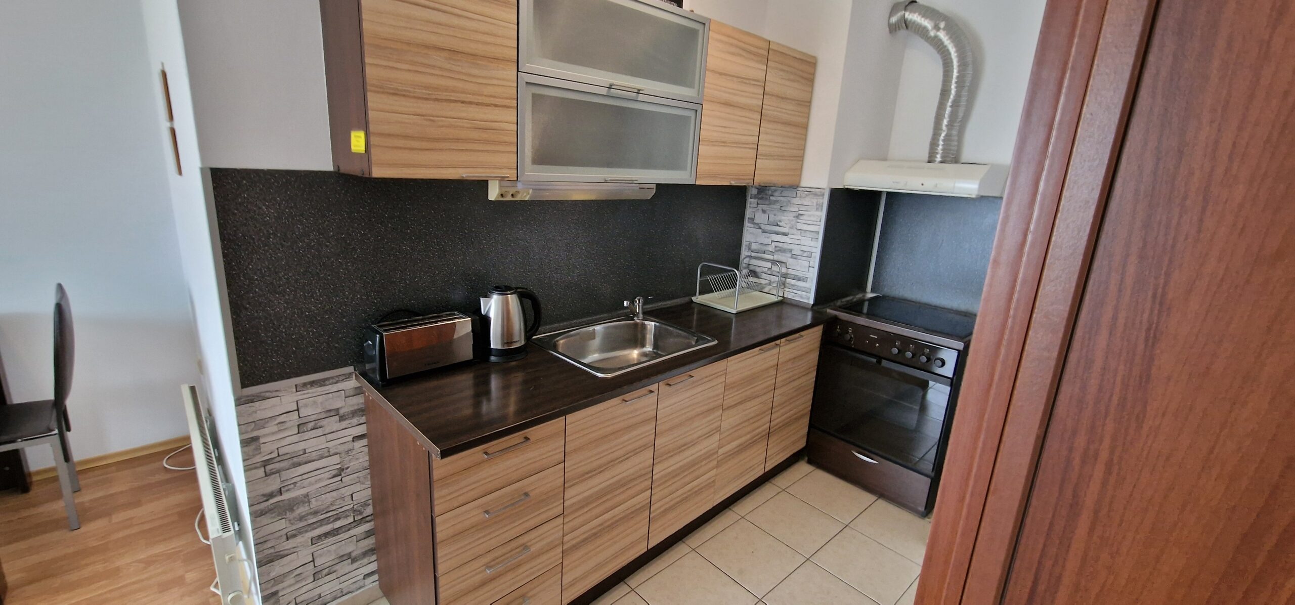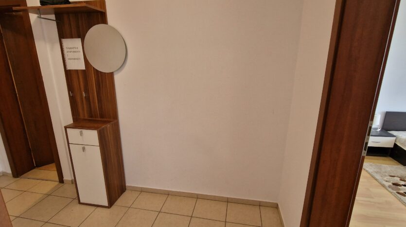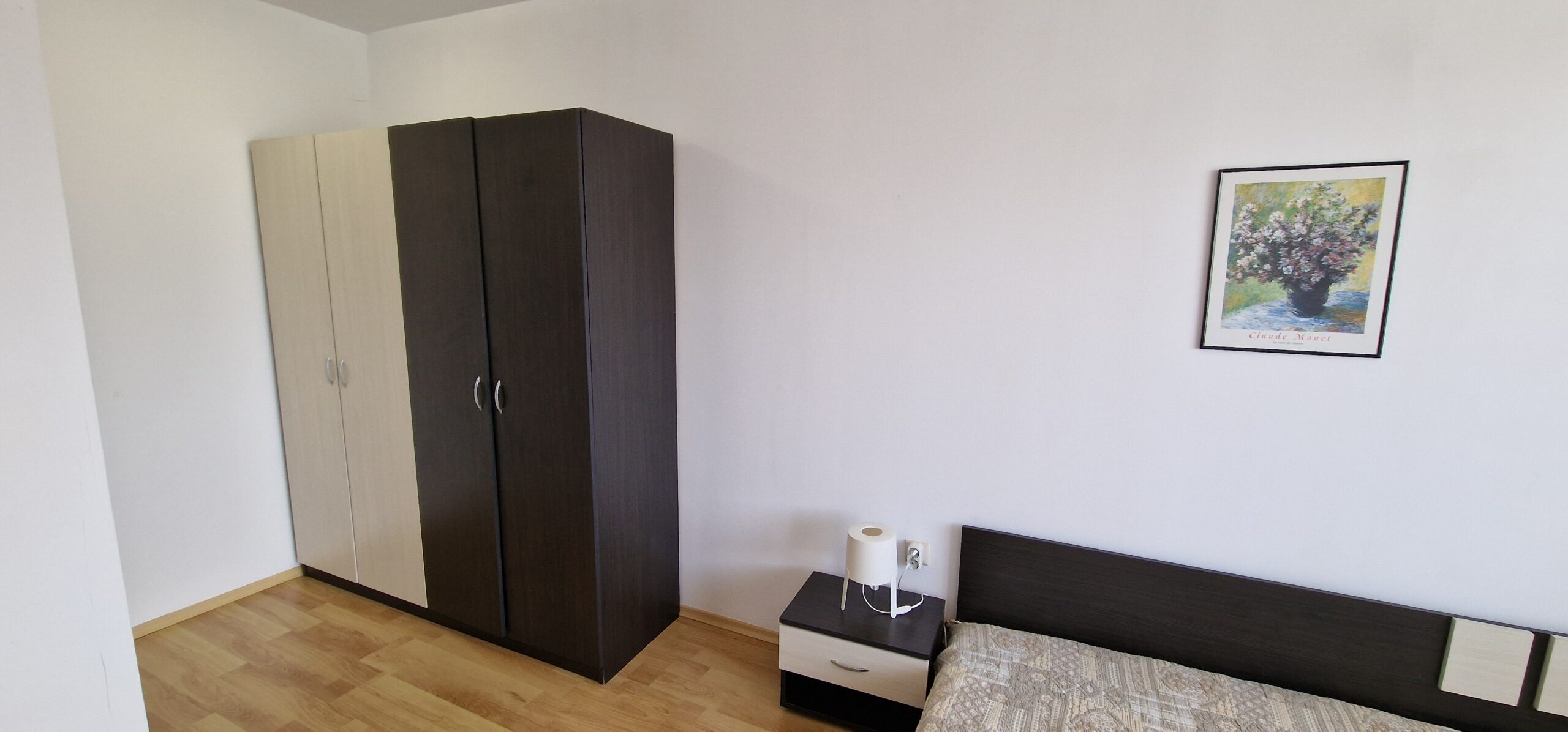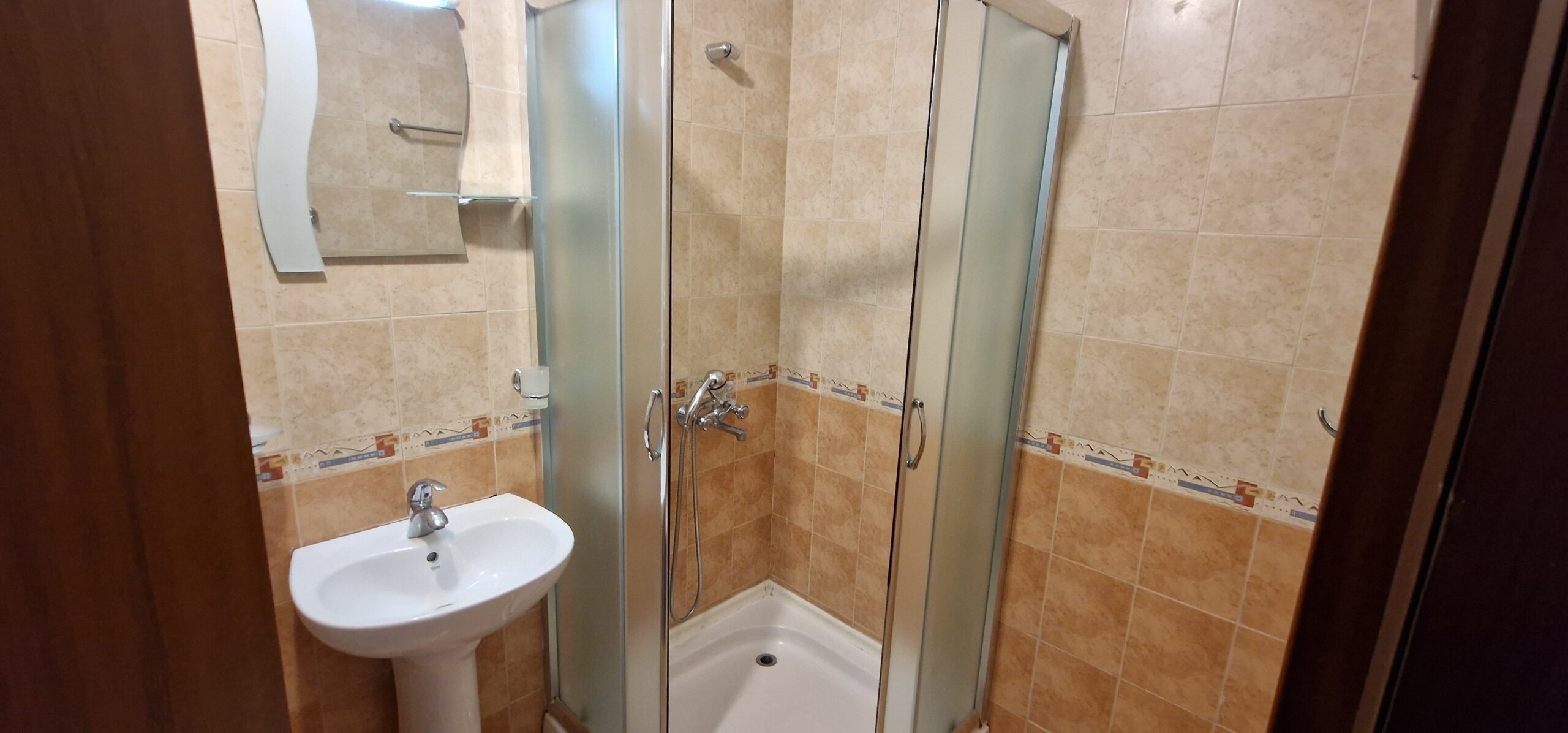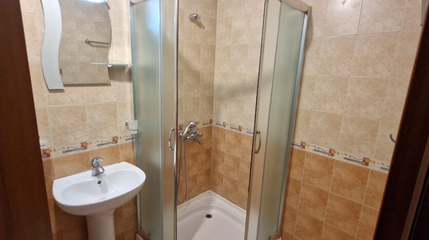 The apartment consists of a good sized hallway, an open plan living/dining room with a kitchenette equipped with an oven, ceramic hob, extractor and refrigerator, a dining table with chairs, a comfortable corner sofa bed with a coffee table and a TV unit with TV. The spacious bedroom is beautifully furnished with a double bed, bedside tables and a big wardrobe.Both rooms have access to a balcony with beautiful views of the Rila Mountain.