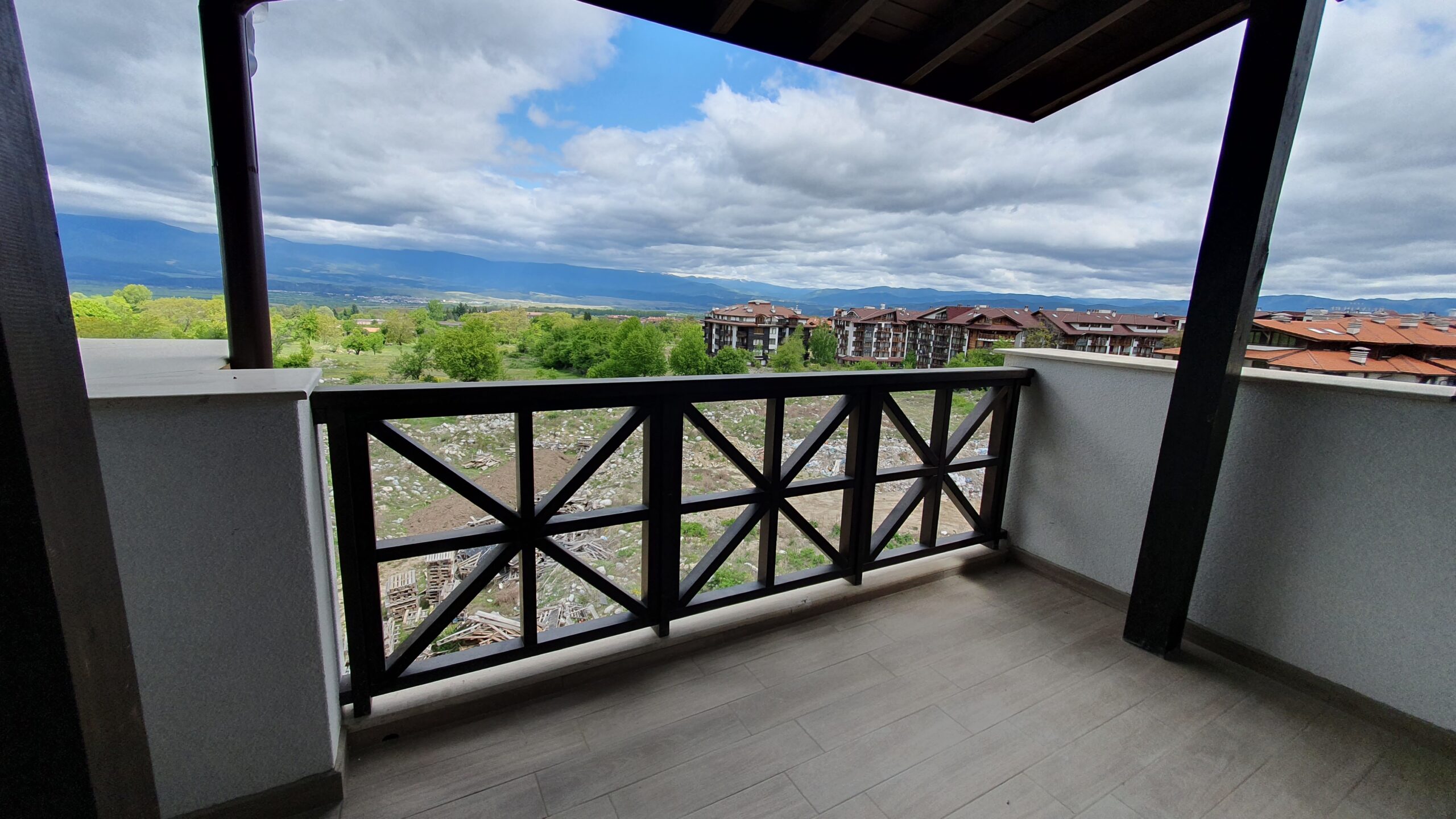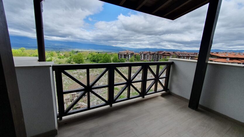 This property consists of an entrance hallway, spacious living/dining room with prepared place for a kitchenette and an access to a South facing balcony with a beautiful view of the inner yard of the complex, two bedrooms and two bathrooms. Both bedrooms have access to a spacious terrace with a magnificent panoramic views of Pirin and Rila mountains.