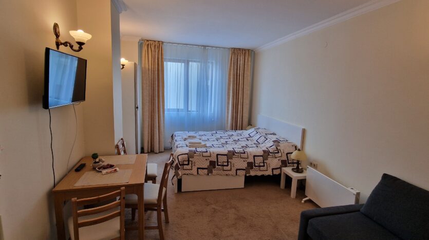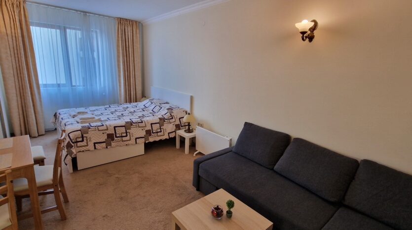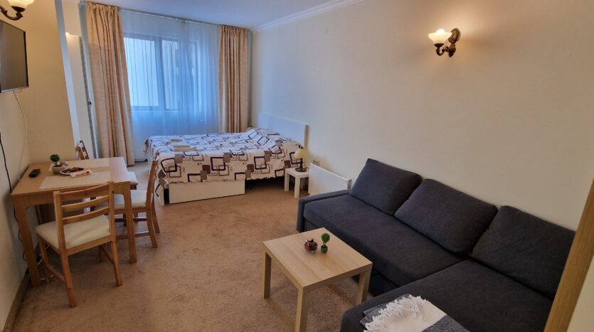 We offer for sale this spacios studio apartment in complex Emerald, located in Ski area of Bansko, 3-4 minutes walking distance to the Gondola Ski lift and restaurants, bars, clubs and shops.