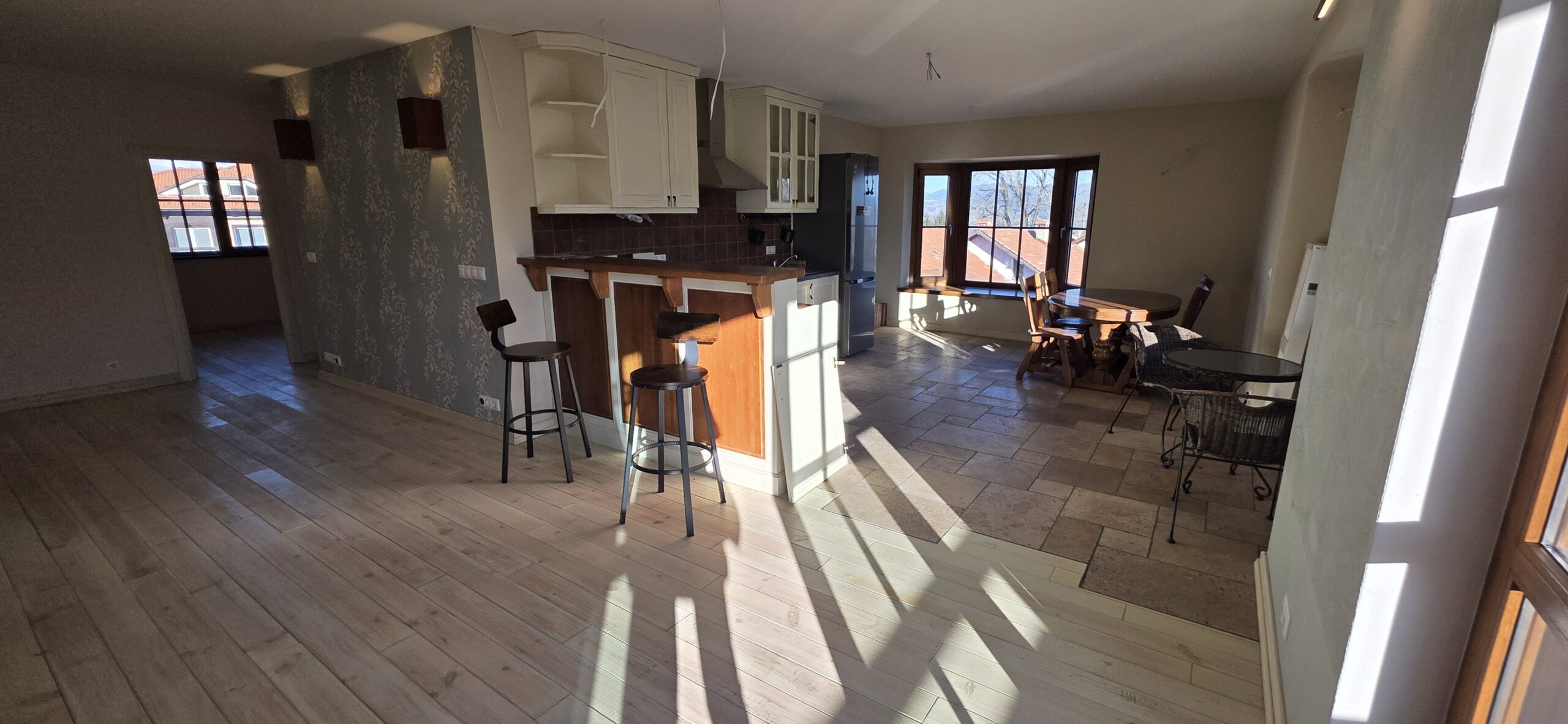 The property is finished with high quality materials: solid wood floors, luxuriosly finished bathrooms with stone tiles, custom-made, solid wood furniture, quality appliances and beautiful log- fireplace.